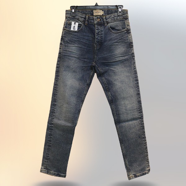 Men's Stretchable Dark Indigo Denim Slacks with 3D Whisker